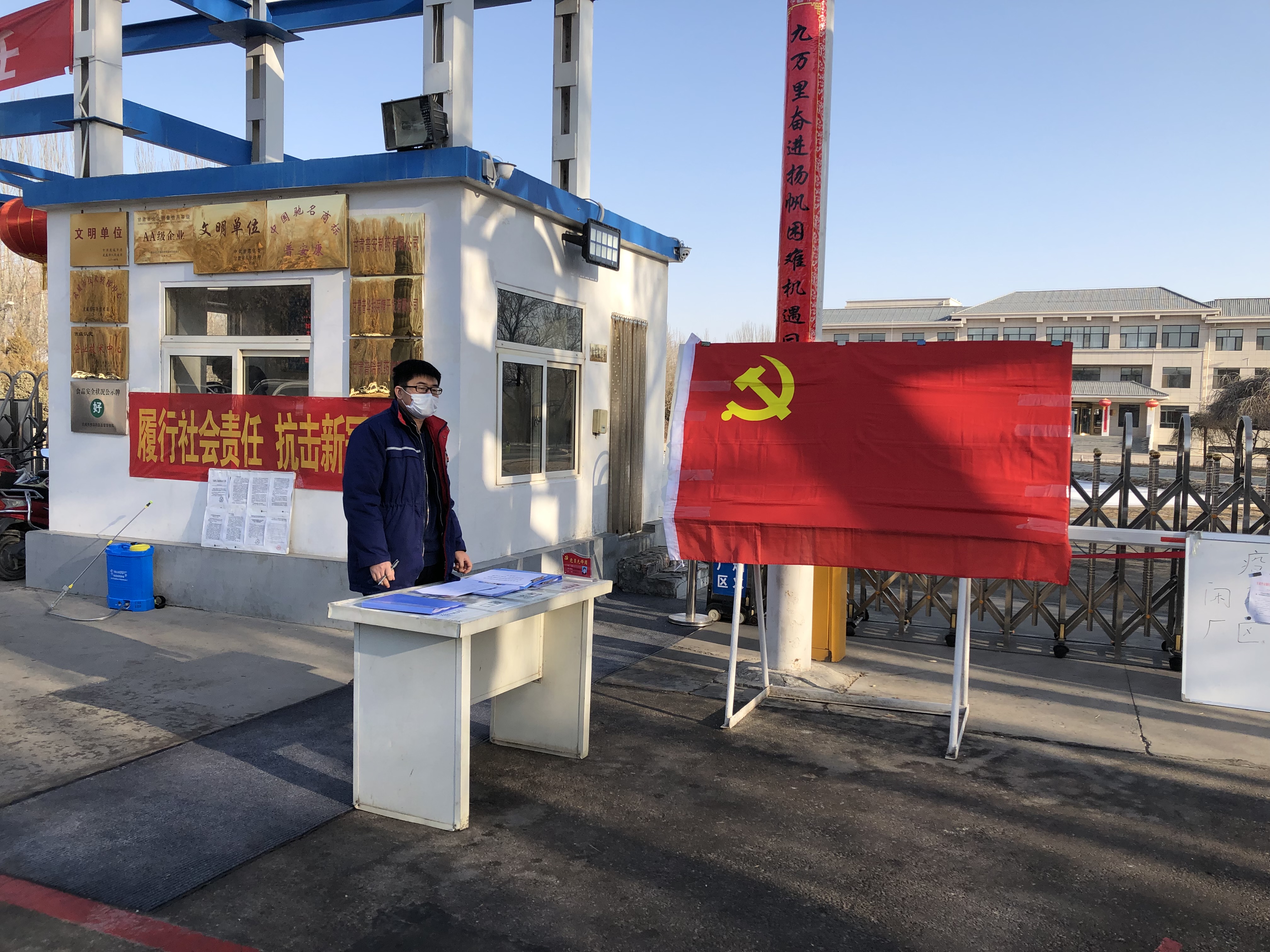 疫情就是命令,防控就是責任。面對當前新型冠狀病毒感染肺炎疫情加快蔓延的嚴重形勢,甘肅普安制藥股份有限公司黨委積極響應黨中央、省委決策部署,按照省藥業集團公司黨委的安排,堅決打贏疫情防控阻擊戰,確保員工生命安全和身體健康,領導和組織公司全體黨員干部爭先鋒、做表率,主動領崗、擔當作為,堅守黨員先鋒崗,時刻站在疫情防控第一線,踐行初心,在抗擊新型冠狀病毒感染的肺炎疫情一線勇擔使命,讓黨旗在防控疫情第一線高高飄揚。