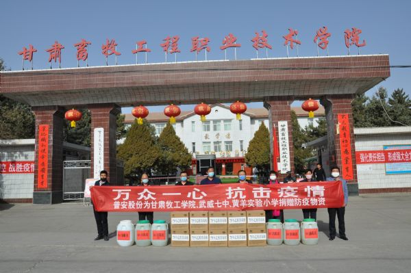 3月20日上午,普安股份向甘肅畜牧工程職業(yè)技術(shù)學(xué)院、武威第七中學(xué)、涼州區(qū)黃羊?qū)嶒?yàn)小學(xué)捐贈84消毒液、75%酒精等一批防疫物資,助力疫情防控工作。這也是疫情發(fā)生后,普安股份彰顯國企擔(dān)當(dāng),助力疫情防控的又一次愛心捐贈。