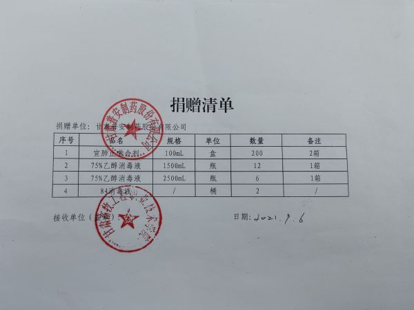 普安制藥始終不忘攜手互助,共克時艱的擔當。在鄭州面臨暴雨災情、疫情雙重挑戰下,普安制藥捐贈價值114.6萬元的抗疫物資用于鄭州災后防疫工作,用實際行動彰顯“一方有難,八方支援”的溫情和愛心。