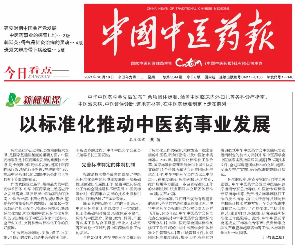 作為我國(guó)成立最早、規(guī)模最大的中醫(yī)藥學(xué)術(shù)團(tuán)體,中華中醫(yī)藥學(xué)會(huì)主動(dòng)適應(yīng)行業(yè)發(fā)展需要,積極開展中醫(yī)臨床診療指南、中醫(yī)治未病、中藥材商品規(guī)格等級(jí)、道地藥材等相關(guān)標(biāo)準(zhǔn)的制修訂,凝聚起一支醫(yī)教研產(chǎn)相互配合、精通業(yè)務(wù)技術(shù)、熟悉標(biāo)準(zhǔn)化知識(shí)和方法的中醫(yī)藥標(biāo)準(zhǔn)化專家隊(duì)伍,推動(dòng)形成了中醫(yī)藥專家廣泛參與,全行業(yè)關(guān)注、支持和參與標(biāo)準(zhǔn)化工作的良好氛圍。