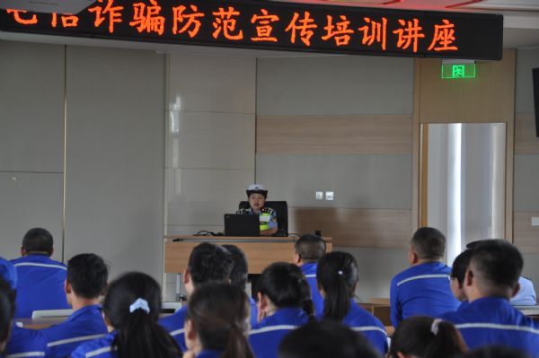 觀看影片結束后,武威市涼州區(qū)公安局宣傳中心滕年峰警官通過現(xiàn)場解說電信詐騙犯罪分子的慣用手法、作案方式,提醒廣大員工提高電信安全防范意識,不輕信涉及賬號、密碼等信息的微信或短信通知,不輕易點陌生鏈接、掃陌生二維碼,以及日常生活中加強個人信息保護,嚴防網(wǎng)絡詐騙。