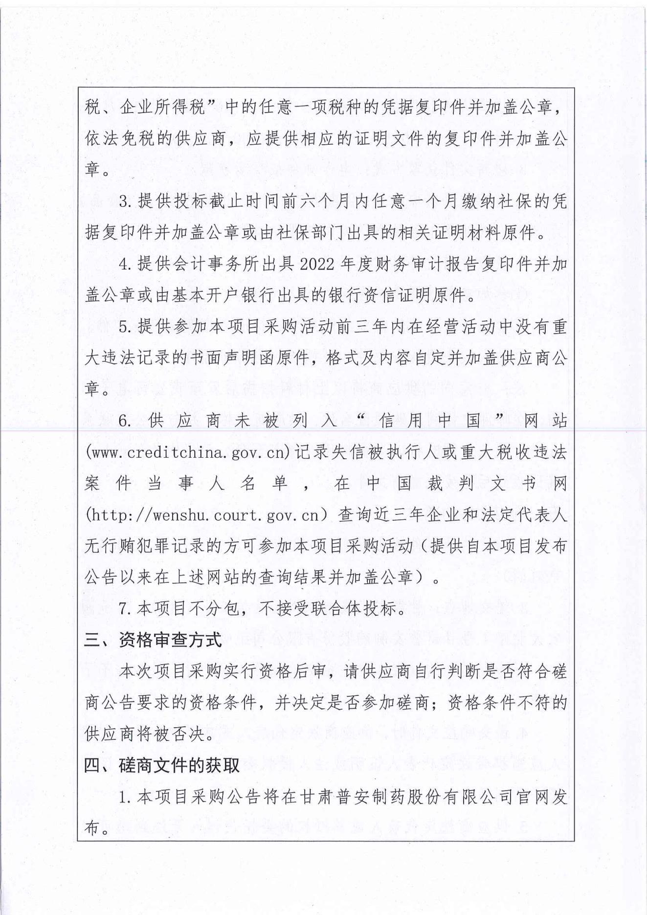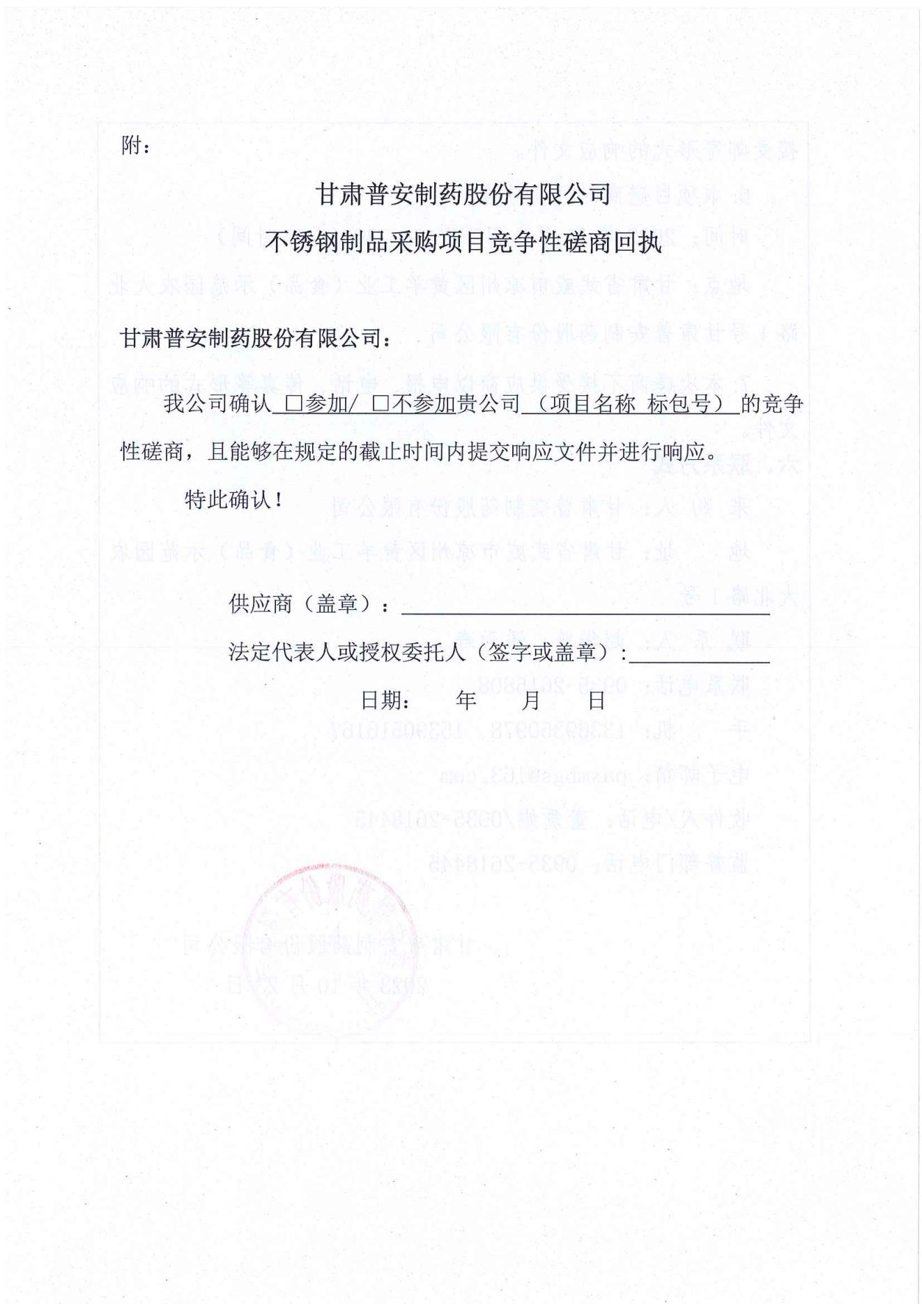甘肅普安制藥股份有限公司年產(chǎn)5000萬盒(3億支)宣肺止嗽合劑等液體制劑生產(chǎn)線升級改造項目不銹鋼制品采購競爭性磋商公告