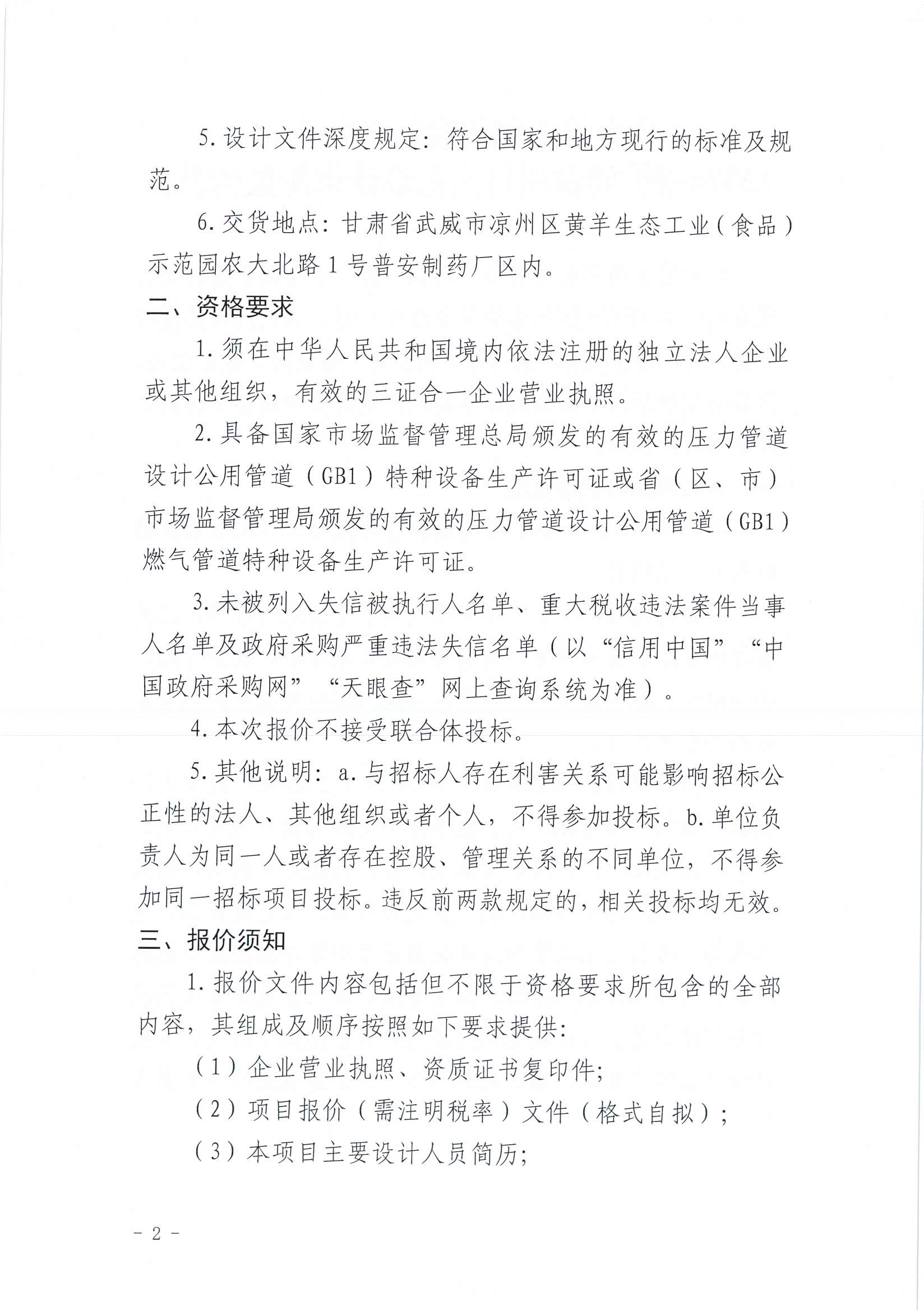 甘肅普安制藥股份有限公司15T/h鍋爐建設(shè)項(xiàng)目工藝設(shè)計(jì)報(bào)價(jià)邀請公告
