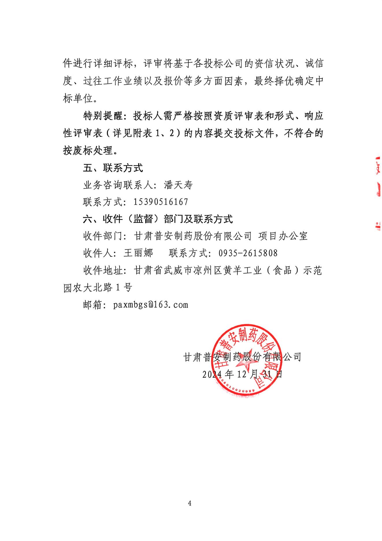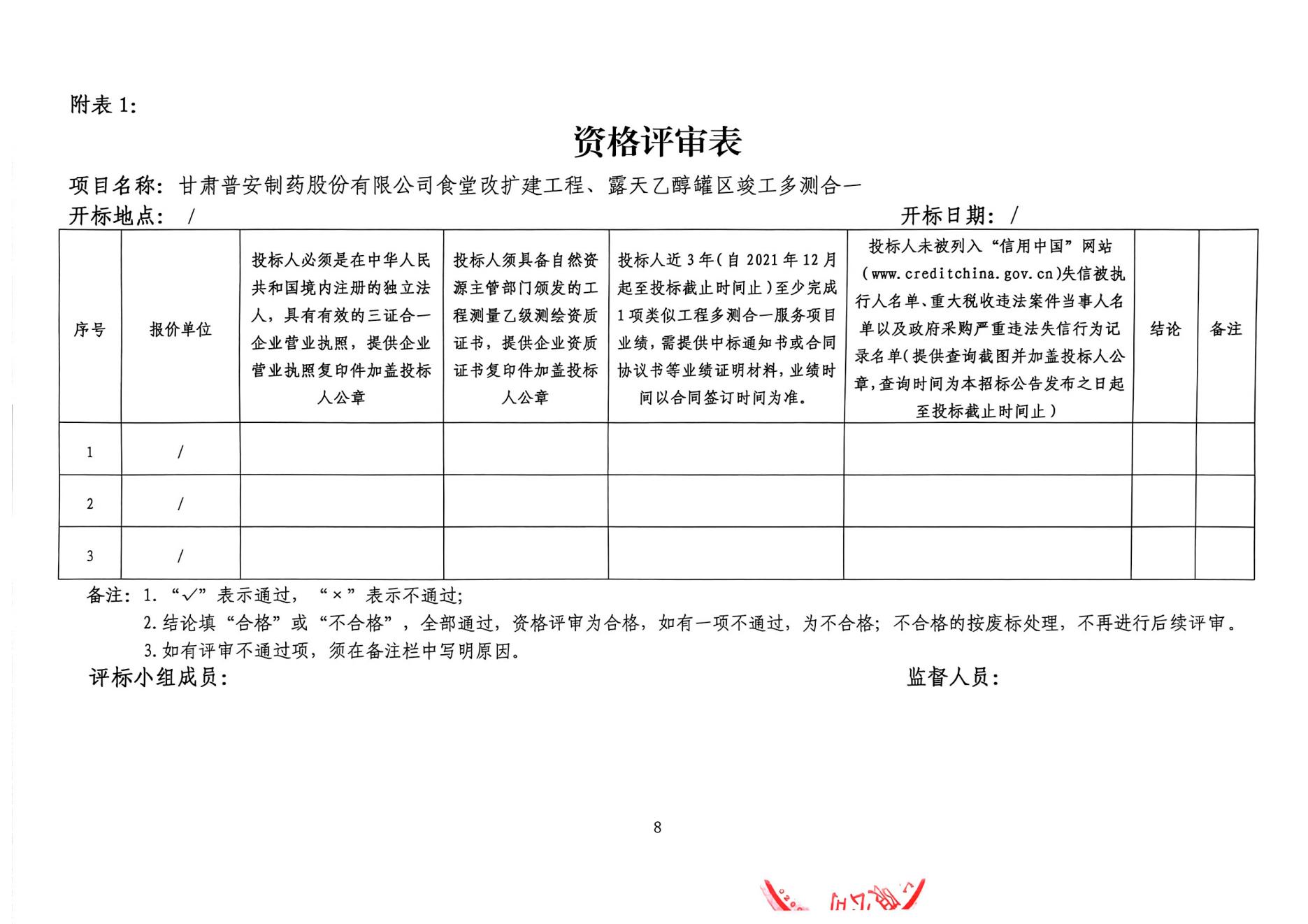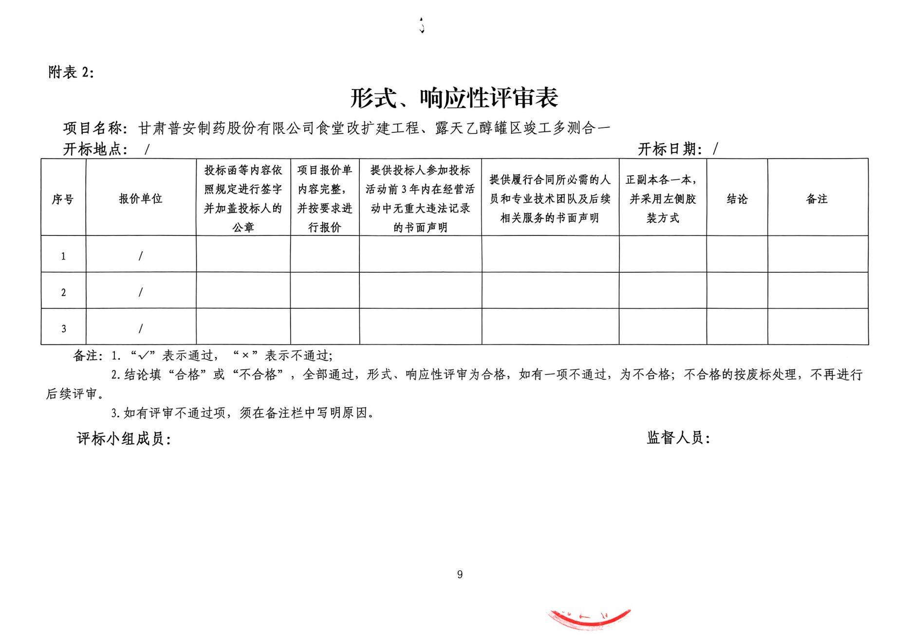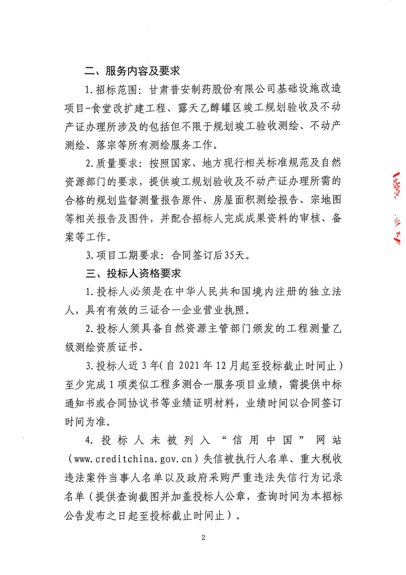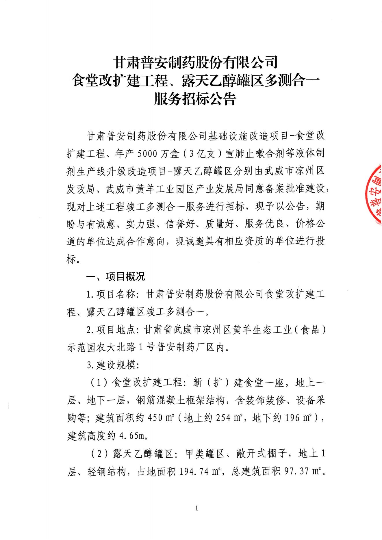 甘肅普安制藥股份有限公司食堂改擴(kuò)建工程、露天乙醇罐區(qū)多測合一服務(wù)招標(biāo)公告