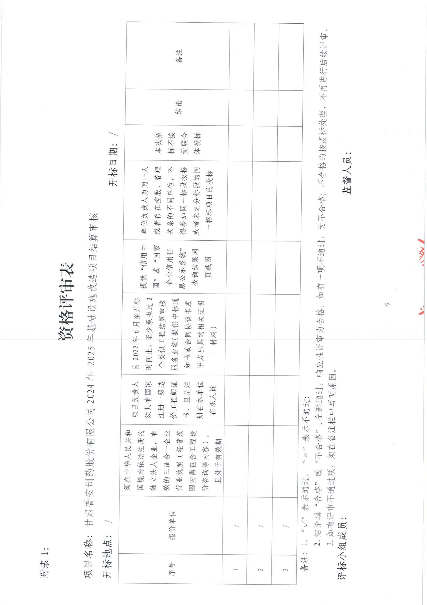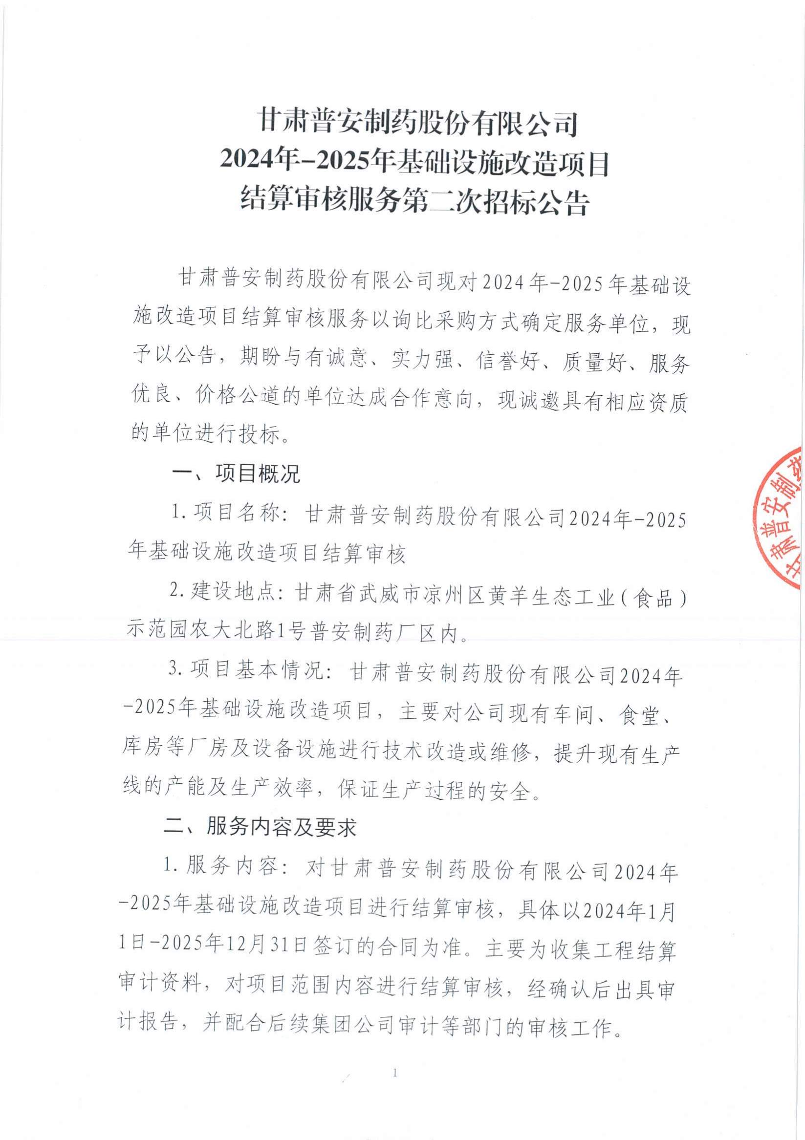 甘肅普安制藥股份有限公司2024年-2025年基礎設施改造項目結算審核服務第二次招標公告