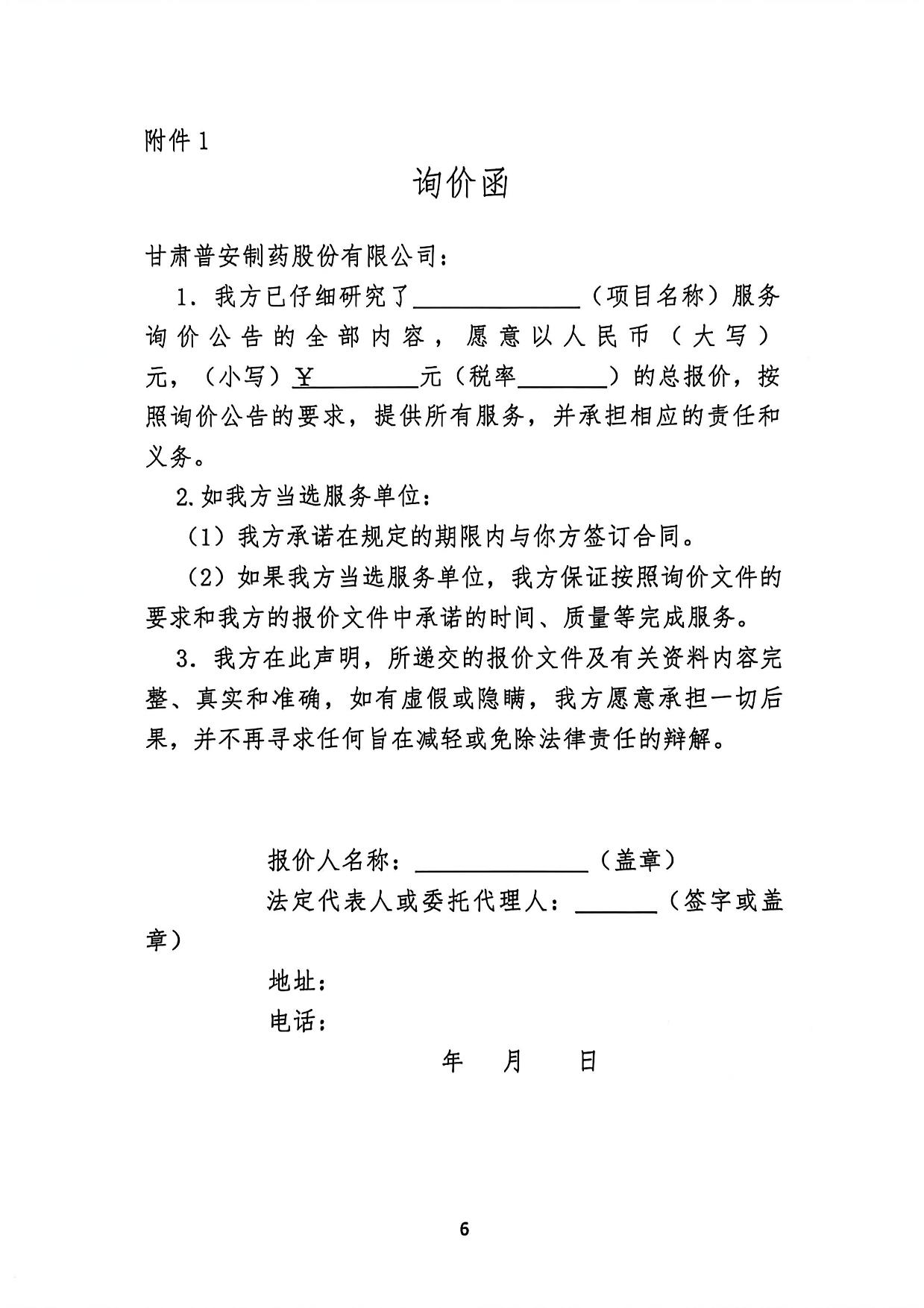 甘肅普安制藥股份有限公司 2026 年度環境自行監測第三方委托詢價公告