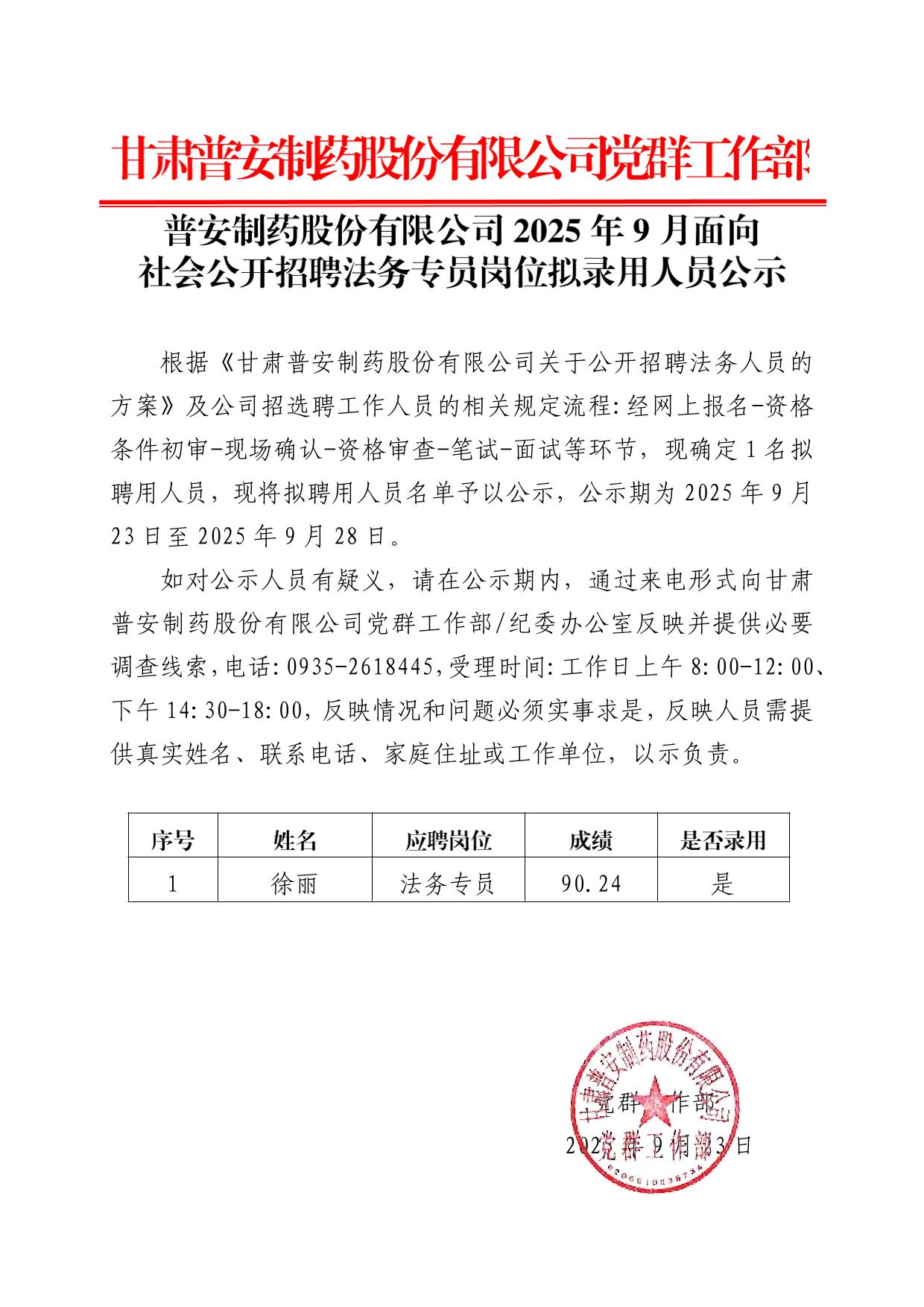 法務(wù)招聘結(jié)果公示